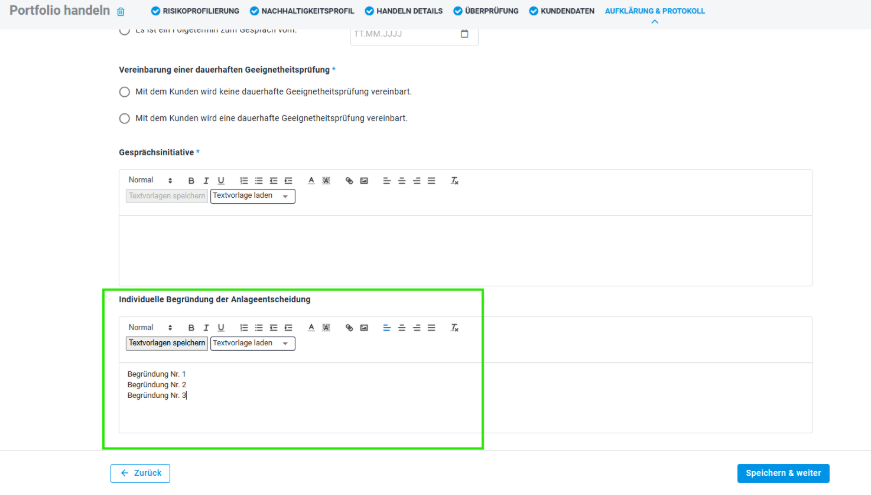 Doppelter Aufwand entfällt: Begründungen aus dem Portfolio-Builder werden jetzt automatisch übernommen