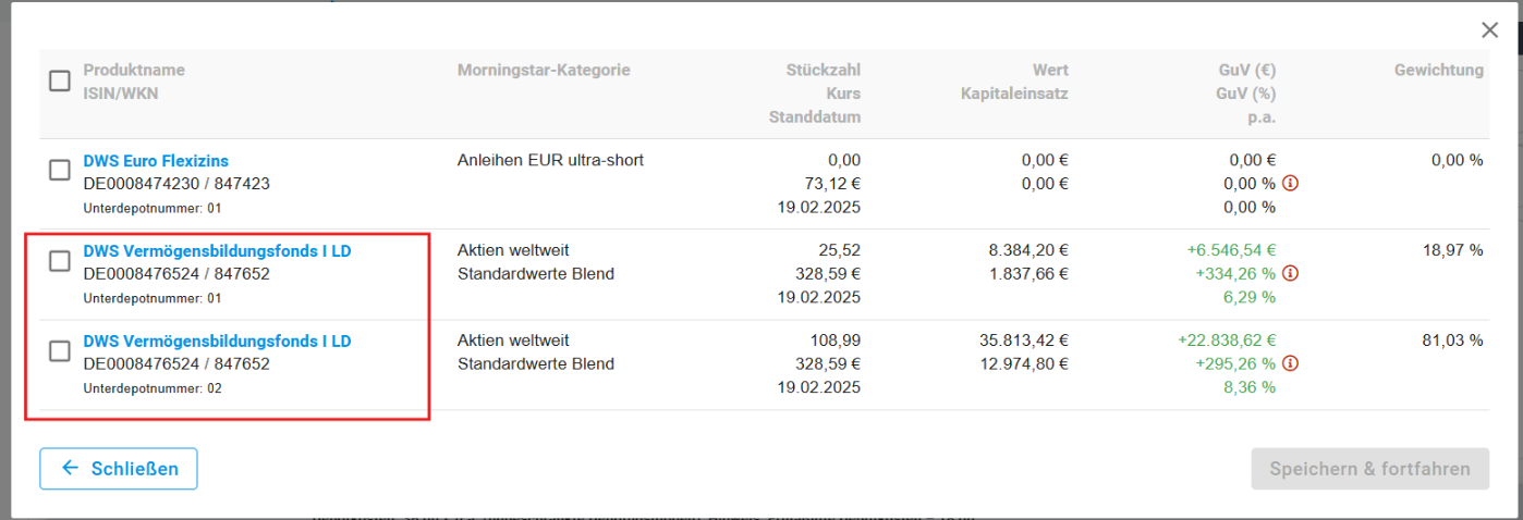 Kurzbeschreibung: Ein Fehler bei der Zuordnung von Sparplänen wurde behoben. In einigen Fällen wurden Sparpläne versehentlich inaktive oder passive Depots zugeordnet. Die Logik wurde überarbeitet, sodass die Zuordnung nun zuverlässig dem richtigen Depot erfolgt.